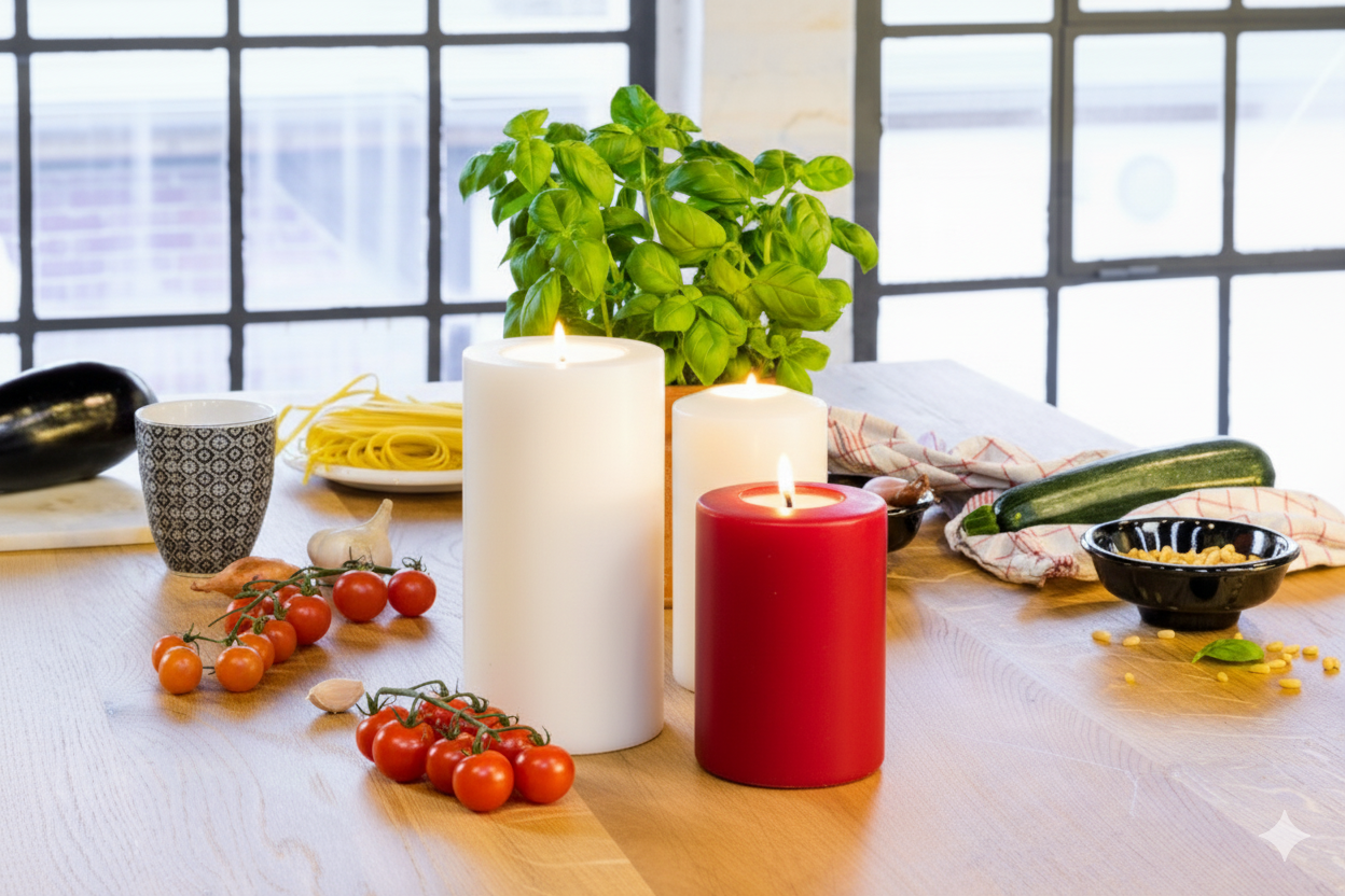 Mit der abgerundeten Oberseite im Design der klassischen Stumpenkerze nachempfunden.