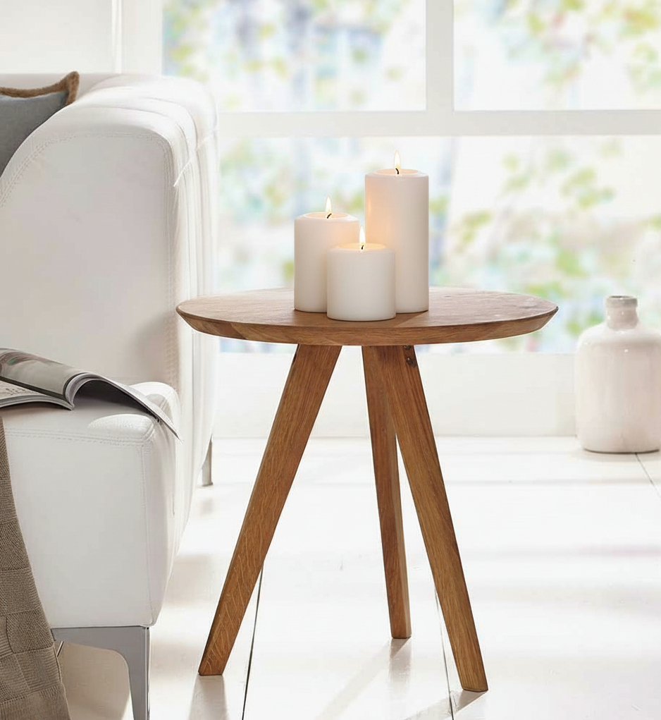Mit der abgerundeten Oberseite im Design der klassischen Stumpenkerze nachempfunden.